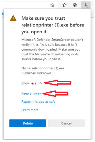 Note: Your computer may flag the last file as a potential threat and block the download. Be sure to click “See more,” then the three dots, followed by “Keep,” and finally “Show more” and “Keep anyway.”