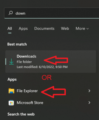 - Open the Downloads folder (use the Start menu, type “Downloads,” or navigate to the File Explorer and select "Downloads" from the left menu).