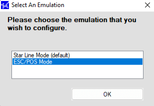 - When prompted, run the program in “ESC/POS mode.” After a moment, the configuration screen will appear: